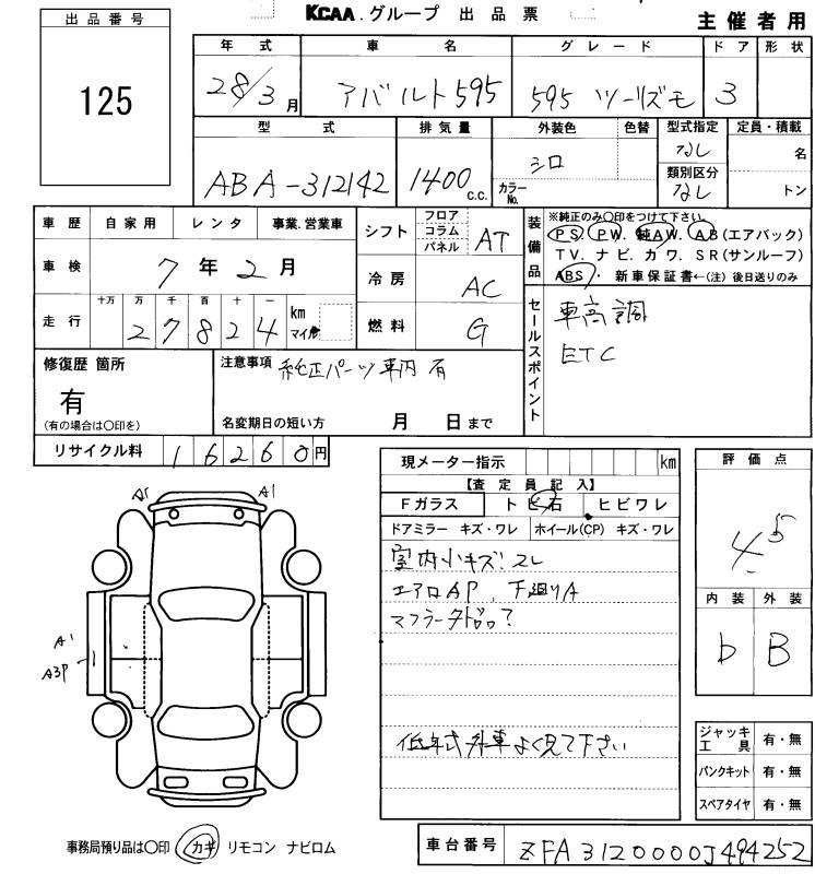 | Auction Sheet | Auction Date | Lot No. | Chassis Grade |